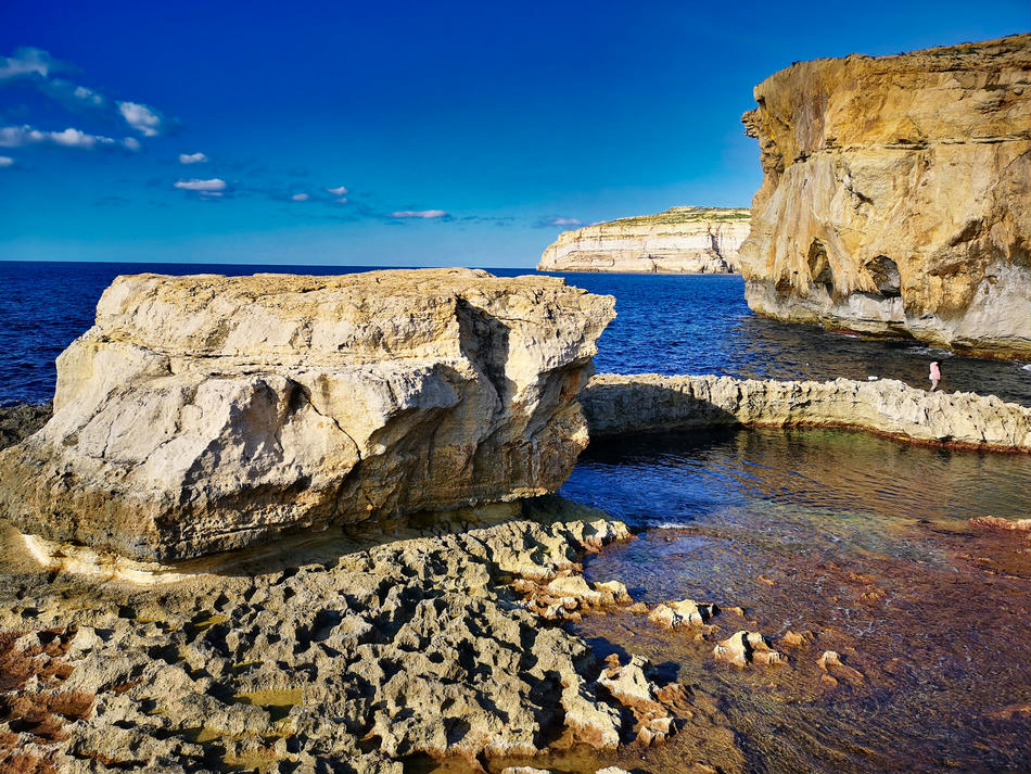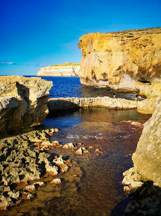 Die Umgebung um das ehemalige Azure Window allein hat sich ziemlich gelohnt. Man konnte hier immer noch zu Teilen der alten “Ruine” des Azure Windows laufen. Der Weg hier über die Klippen ist aber etwas anstrengend, da man an meisten Stellen sogar etwas Klettern muss. Zum Teil wurden hier sogar kleinere Stahlgittertreppen aufgebaut, um verschiedene Höhenunterschiede meistern zu können. An ein, zwei Stellen muss man auch einen nassen Schuh in Kauf nehmen, was in Kombination einige Leute abgeschreckt hat, die vorzeitig wieder umgedreht sind. Paul hat den Weg aber durchgezogen und die Aussicht auf die tollen Klippenformationen an der Küste genießen können.