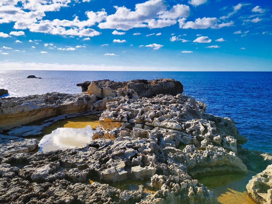 Der bekannteste Ort in Gozo ist wohl das Azure Window. Hier war lange Zeit ein Fels, der über eine große natürliche Brücke mit dem Festland verbunden war. Leider war diese Naturschönheit anderthalb Jahre zuvor eingestürzt, sodass wir nur noch die Umgebung besichtigen konnten.