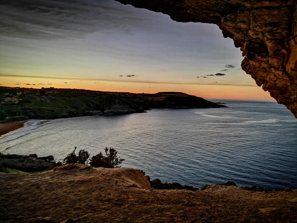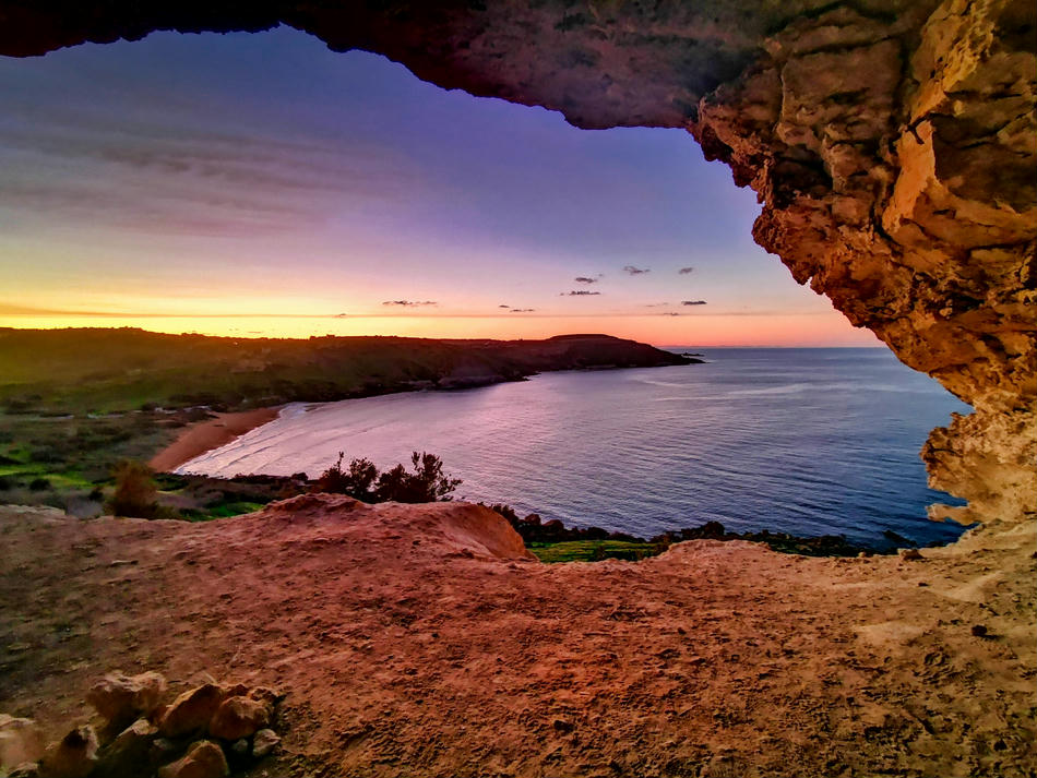 Tal-Mixta Cave mit Blick auf Ramla Bay