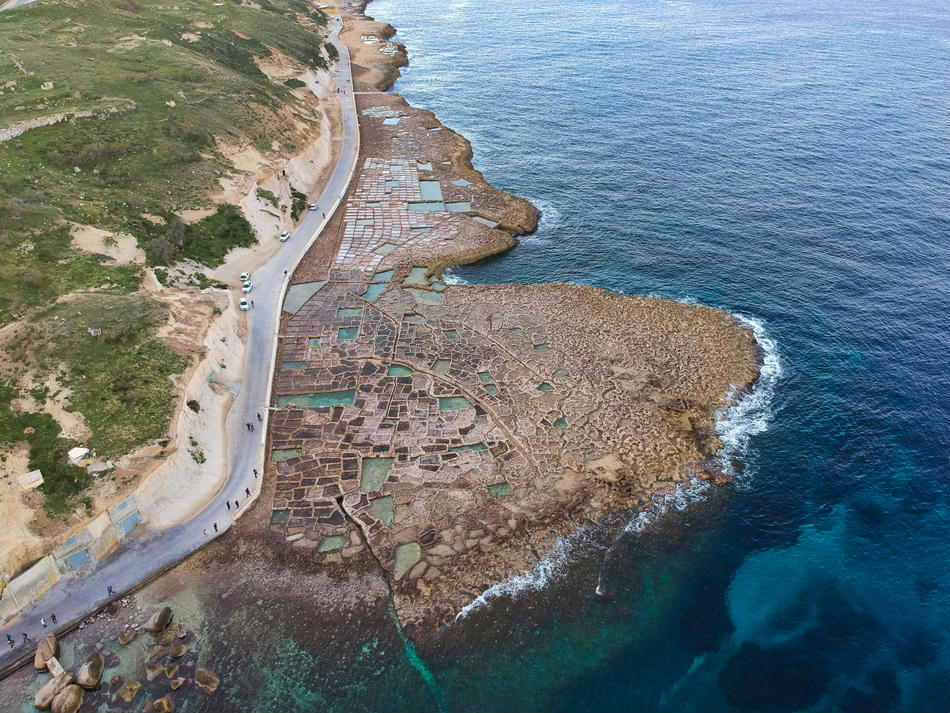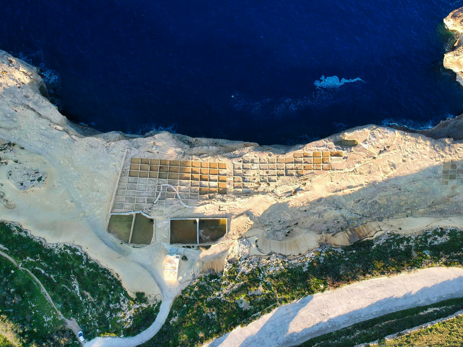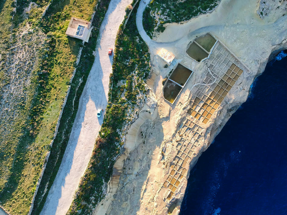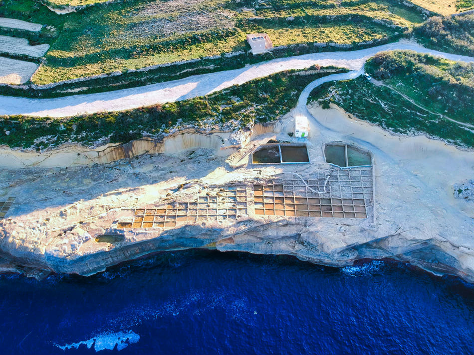 Unser weiterer Weg führte uns weiter über die Straße mit den vielen Schlaglöchern an der nördlichen Küste von Gozo entlang. Unweit von dem Canyon befinden sich riesige Bereiche, die voll mit Salzfeldern sind.