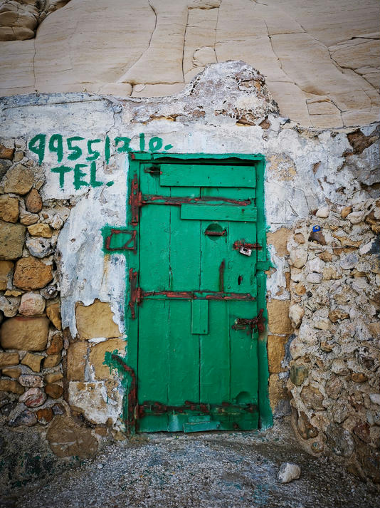 Während Laura die letzten Drohnenaufnahmen machte, hat Paul sich hier noch einmal etwas umgeschaut – und hat mal wieder eine hübsche Tür gefunden. Mitten in der Felswand in unserem Rücken befand sich eine alte grüne Holztür mit rostigen Metallscharnieren. So etwas ist natürlich immer ein Fotomotiv wert :)