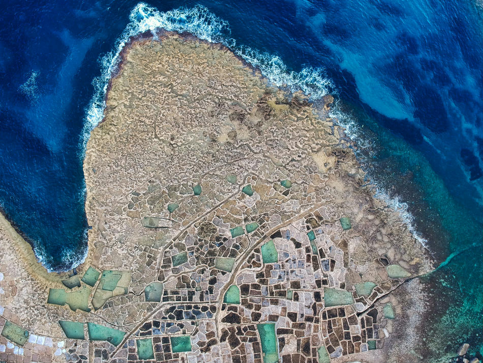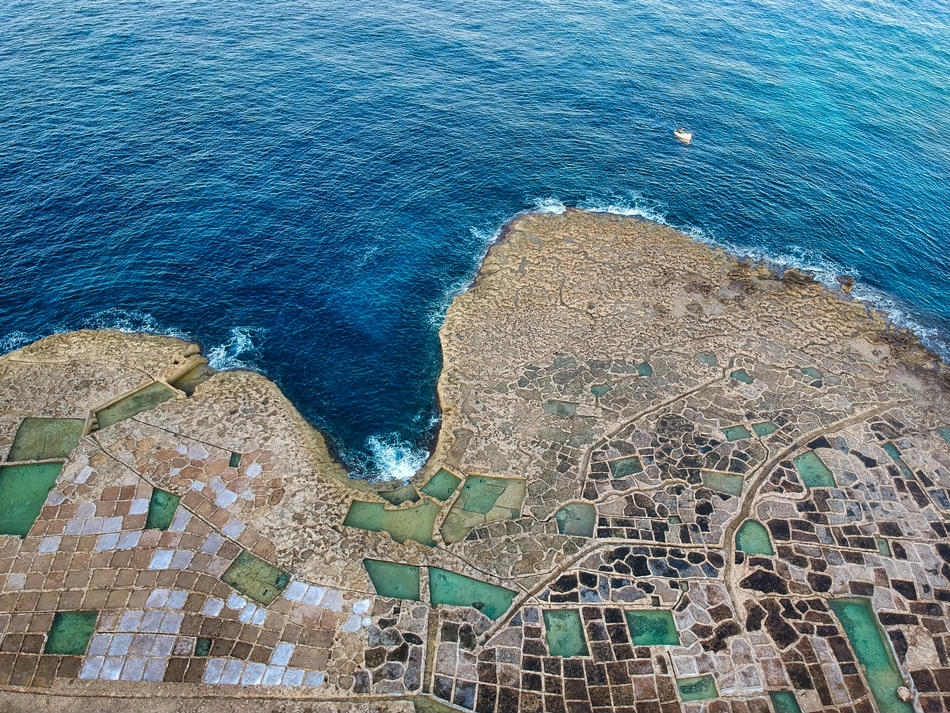 Als wir unsere Drohne noch einmal herausholten, konnten wir aber erst die wahre Schönheit dieser Salzfelder bestaunen. So ein regulärer Tourist, von denen es hier auch einige gab, konnte das eigentliche Naturschauspiel hier gar nicht sehen. Die Salzfelder waren allesamt ziemlich bunt – und zeigten so den unterschiedlichen Fortschritt in der Salzgewinnung. Dazu die geschwungene Küste mit dem seichten Meer – einfach traumhaft. Unser Kumpel Dronny – so heißt unsere kleine Drohne – hat uns hier wirklich einen guten Job gemacht.